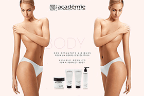 Academie BODY – лінія по догляду за тілом. Ретельне очищення і ексфоліація, зволоження, живлення, ефективний вплив на целюліт, поліпшення пружності і загального тонусу шкіри, виведення токсинів, усунення наслідків стресу.