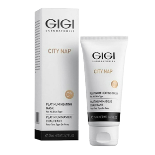 GIGI City Nap Platinum Heating Mask – нагріваюча маска для обличчя, що містить платину, яка активно стимулює капілярний кровотік і очищає шкіру, розм'якшуючи роговий шар. Маска регенерує шкіру, забезпечує глибоке живлення та насичує дерму амінокислотами, що сприяють формуванню здорового колагену і природному синтезу гіалуронової кислоти. Її багатокомпонентний склад має живильні, зволожувальні та регенераційні властивості, бореться з віковими змінами та негативним впливом навколишнього середовища.