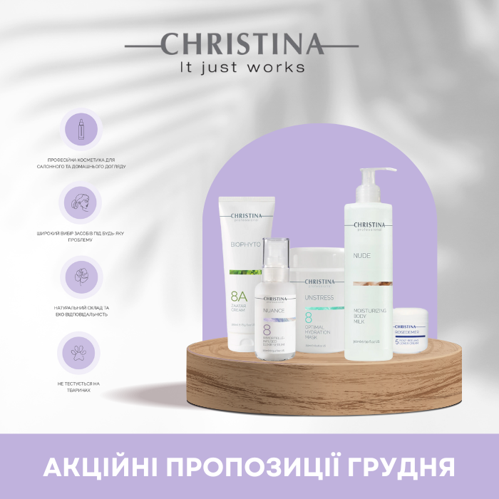 Бренд Christina представляє спеціальну пропозицію на подарункові набори та популярні засоби професійного догляду. Це ідеальний варіант для тих, хто цінує результат, безпеку та індивідуальний підхід до шкіри. Готові комплекти заощаджують час на підборі засобів і гарантують збалансований щоденний догляд. Встигніть придбати за вигідною акційною ціною!