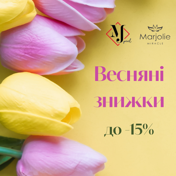 Знижки до -15% на вибрані засоби від Marjolie та MjPeel!