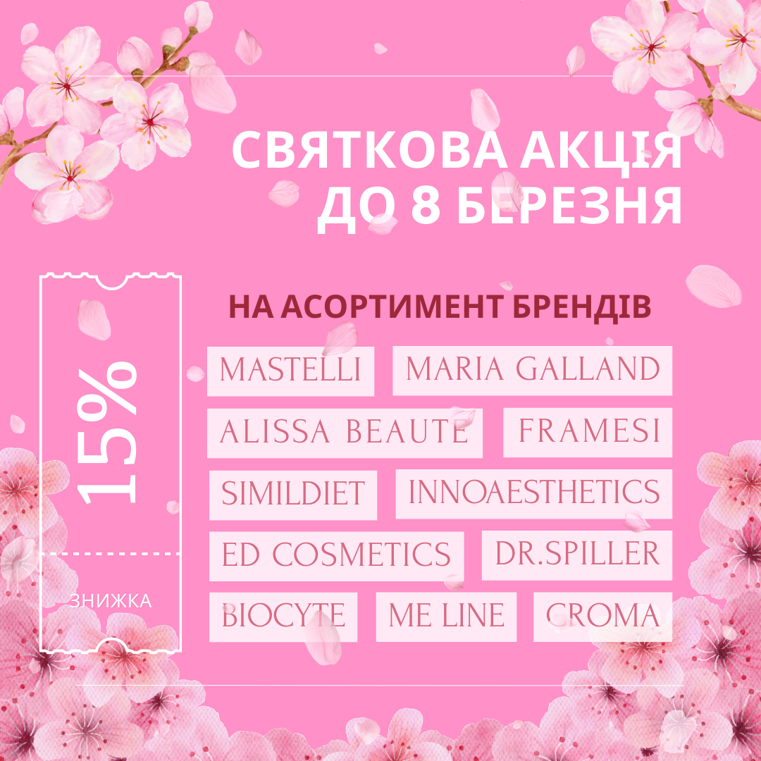Лише до 08.03 діє знижка –15% на весь асортимент наступних брендів:
